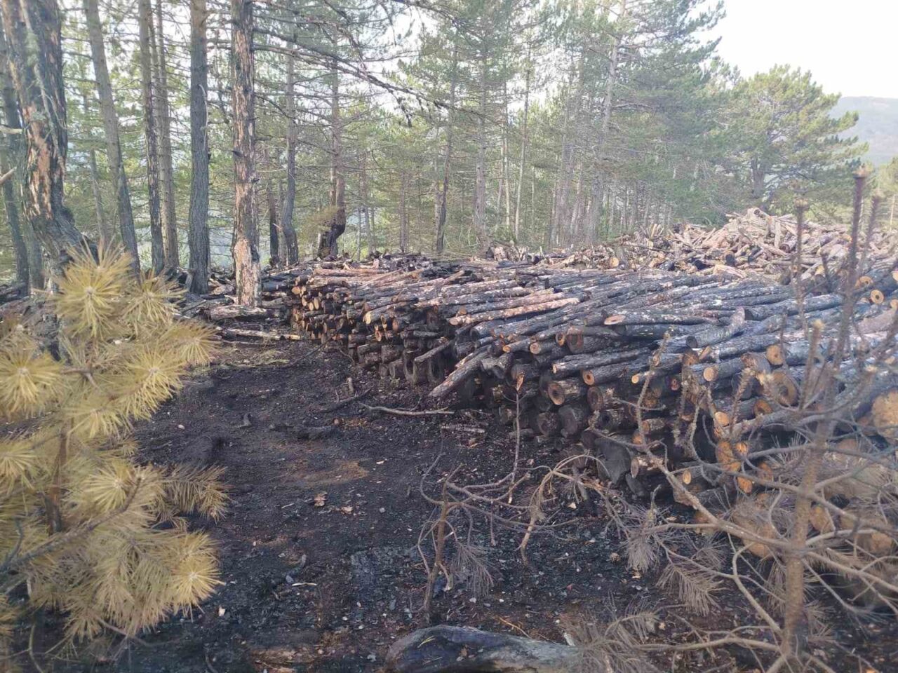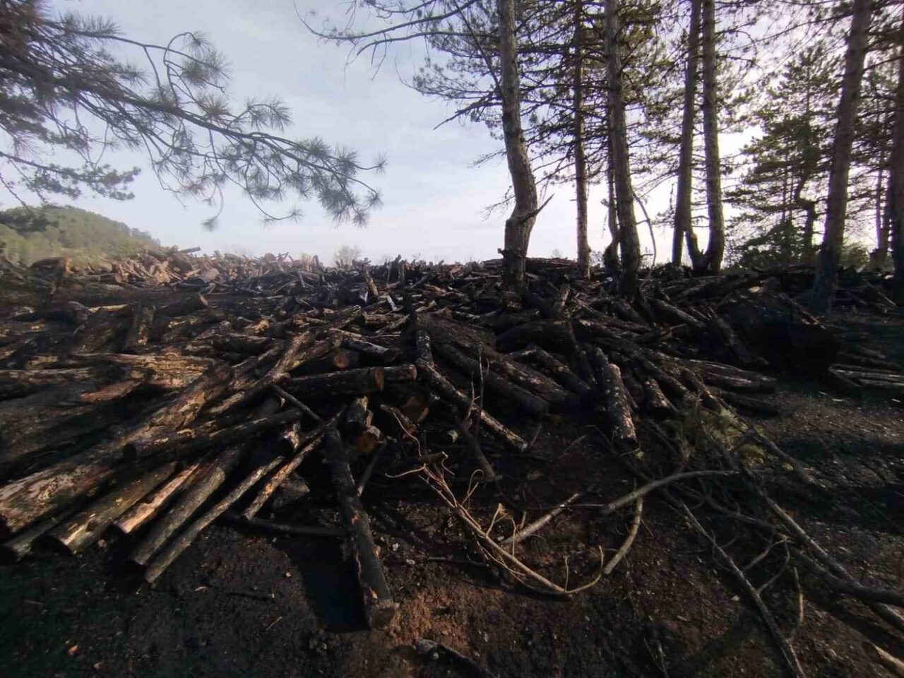 Çorum’un İskilip ilçesi, orman kesim alanında meydana gelen yangın sonucu 80 ster çam ağacı hasar gördü.