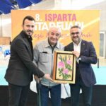 8. Isparta Kitap Fuarı’na katılan yazarlara çeşitli hediyeler takdim edilirken, yayınevleri temsilcilerine de gül tablosu ve plaket verildi. Hediyeleri Isparta Belediye Meclis Üyeleri İbrahim Kocabaş ve Mehmet İzci takdim etti.