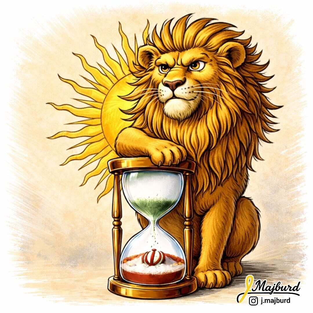 Dördüncü paylaşımda, 1979 İran Devrimi’ne kadar İran bayrağında yer alan aslan ve güneş figürünün karikatürü yer aldı. Aslanın pençesi bir kum saatinin üzerinde dururken, kum saatinin alt kısmında ise İran’ın mevcut bayrağı konumlandı. Gönderide, “İran aslanlarının ve dişi aslanlarının karanlığa karşı mücadele için yükselişi. Işık, karanlığa galip geliyor” ifadelerine yer verildi.