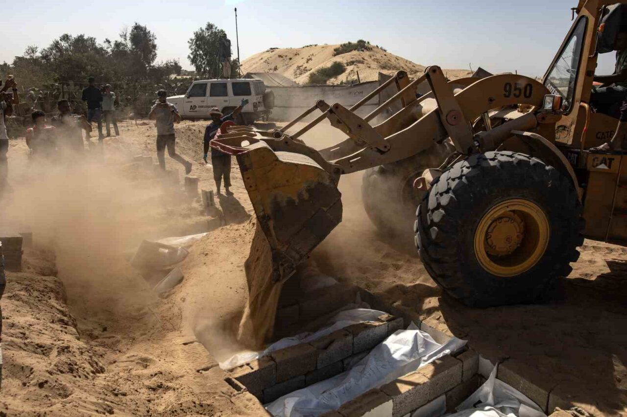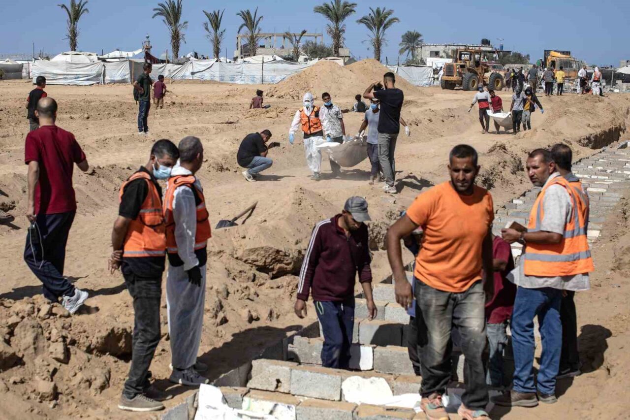 İsrail hapishanelerinde yaşamını yitiren ve aileleri tarafından teşhis edilemeyen 54 Filistinli cenaze, Gazze Şeridi’nin orta bölgesindeki Deir el-Balah’ta toplu bir mezara gömüldü.
