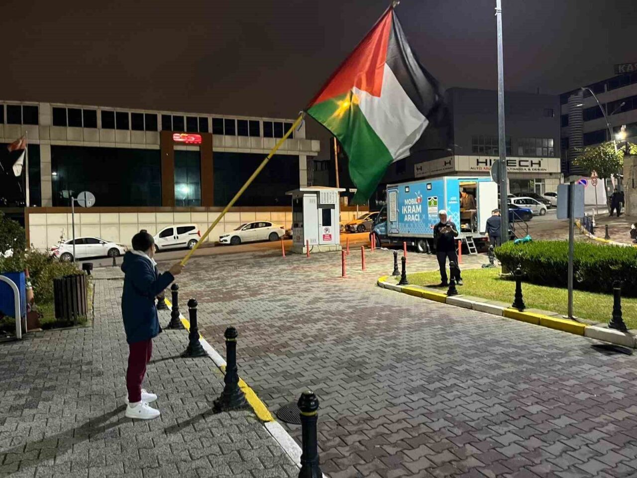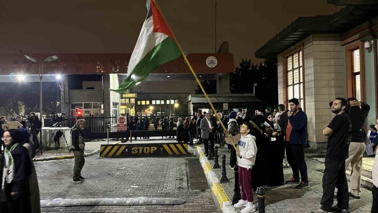 Aktivistleri karşılamak için Adli Tıp Kurumu önünde bir araya gelen vatandaşlar, ellerinde Türk ve Filistin bayraklarıyla destek gösterisi düzenledi. Burada, aktivistlere moral vermek amacıyla tekbir getiren kalabalık, dayanışma duygularını ifade etti.