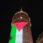 KÜLTÜR VE TURİZMİ BAKANLIĞI TARAFINDAN GALATA KULESİ’NE DESTEK VERMEK AMACIYLA FİLİSTİN BAYRAĞI YANSITILDI.