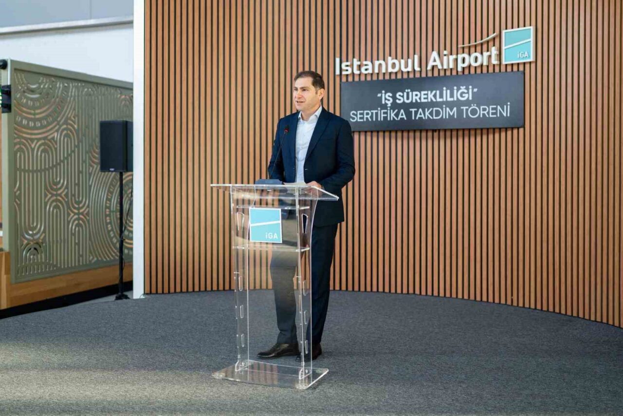 Kıymetli bir sertifikanın sahiplenilmesi nedeniyle İstanbul Havalimanı’nda gerçekleştirilen törende İGA İstanbul Havalimanı CEO’su Selahattin Bilgen, İstanbul Havalimanı Mülki İdare Amiri Vali Mehmet İlker Haktankaçmaz ve diğer davetliler yer aldılar. Töz sırasında bir konuşma yapan CEO Selahattin Bilgen, “Bugün burada İGA İstanbul Havalimanı olarak, bizim için son derece önemli bir başarıyı hep birlikte kutlamak üzere bir araya geldik. ISO 22301 İş Sürekliliği Yönetim Sistemi Sertifikasını elde etmenin gururunu yaşıyoruz. Bu belge, havalimanı ve terminal işletme süreçlerimizin muhtemel kesintilere, acil durumlara ve kriz ortamlarına karşı yüksek uluslararası standartlarda sürdürülebilirliğini ispatlayan bir tescildir. Aynı zamanda operasyonel dayanıklılığımızın ve yolcularımıza kesintisiz hizmet sunma isteğimizin bir göstergesidir” dedi.