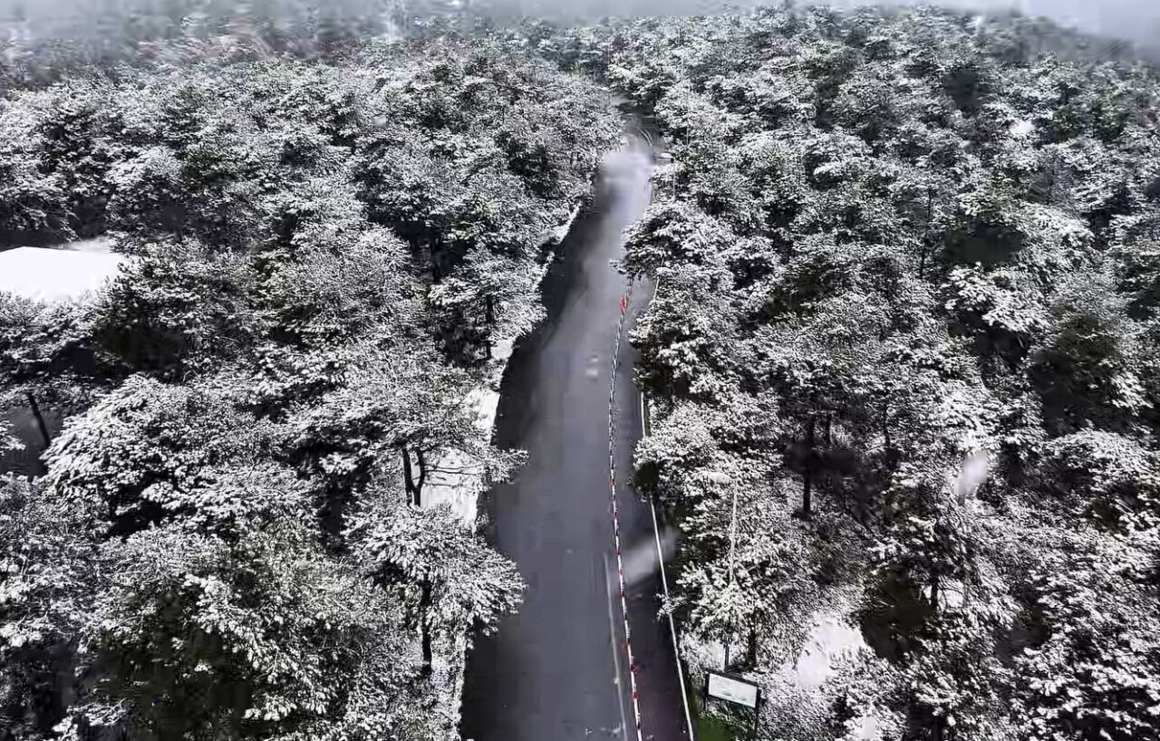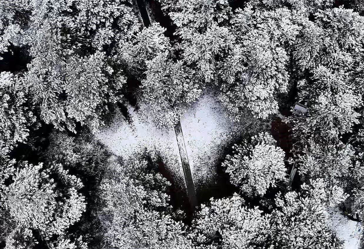 İstanbul’da kar yağışı, Başakşehir’deki Şamlar Tabikat Parkı’nı beyaza bürüdü, dronla görüntülendi.
