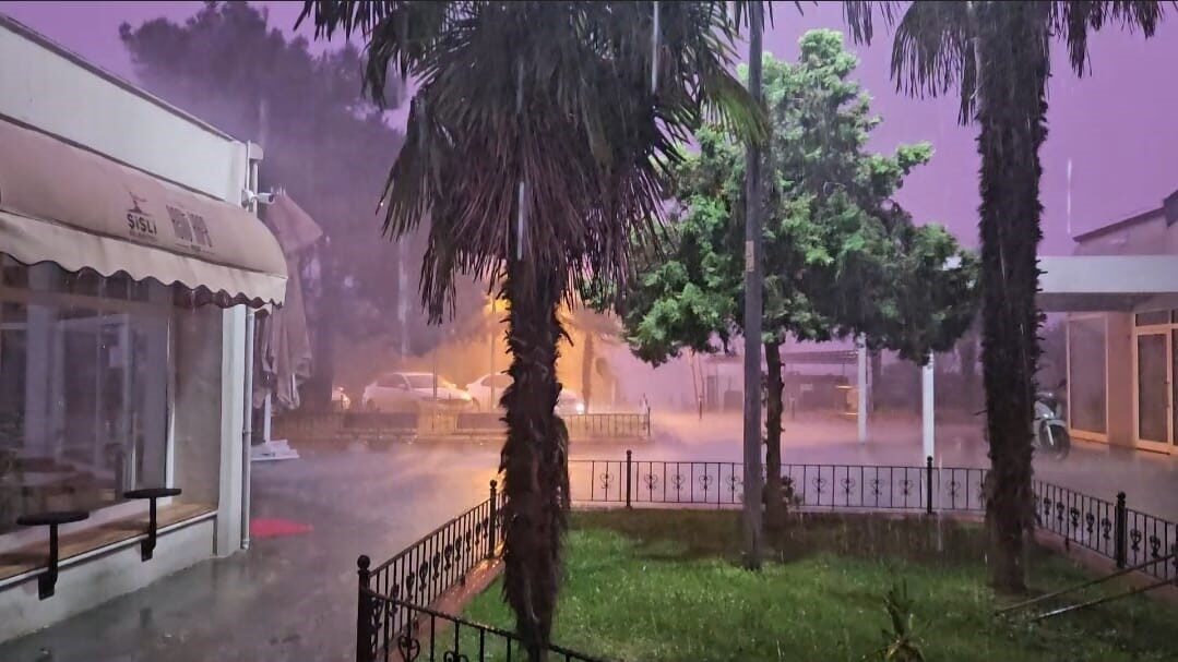 Gök gürültüsü ve şimşeklerin de görüldüğü yağışta şimşekler geceyi aydınlattı.