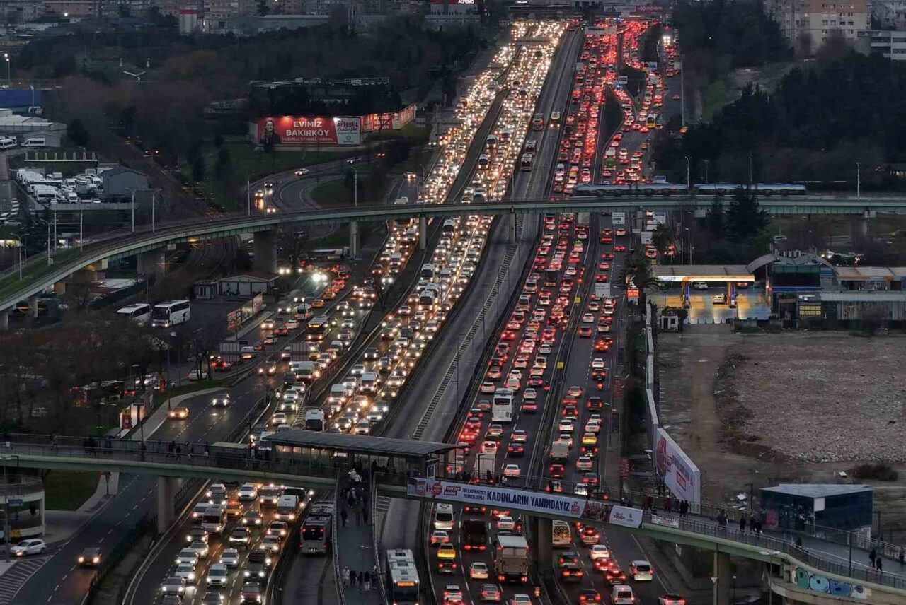 Avrupa Yakası’nın en yoğun bölgelerinden biri olan D-100 Karayolu Merter ve Cevizlibağ mevkiinde havadan görüntülendi. Kaydedilen görüntülerde, kilometrelerce uzanan araç kuyrukları ve kırmızıya bürünen yollar, İstanbul’daki trafik sıkışıklığının boyutunu gözler önüne serdi.