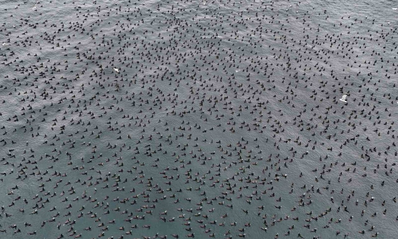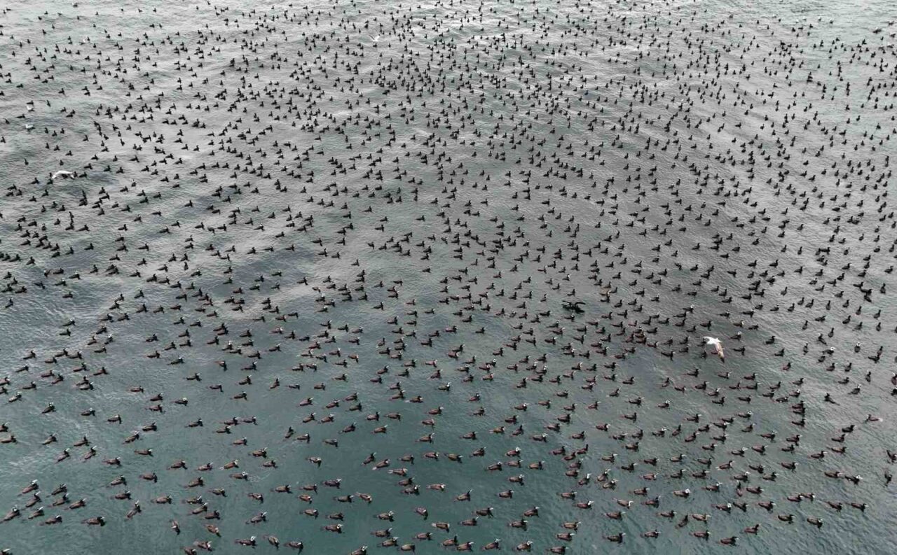 Havadan kaydedilen görüntüler, hem kuşların sürü davranışını hem de Marmara Denizi’nin kış aylarındaki ekolojik dengesini net bir şekilde ortaya koyarken, uzmanlar bu tür doğa olaylarının bölgenin biyolojik çeşitliliği açısından önemli olduğuna dikkat çekiyor.