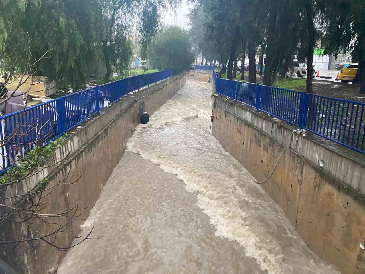 Meteoroloji İzmir Bölge Müdürlüğü tarafından yapılan uyarıda belirtilen sağanak yağış, sabahın erken saatleri itibarıyla etkili olmaya başladı. Özellikle Karabağlar ve Buca’da bazı cadde ve sokaklar adeta göle dönmüş durumda. Karabağlar Sanayi bölgesinde yaşanan dere taşması sonrası yol su altında kaldı. Bir vatandaşın suya kapılmamak için demir korkuluklara tutunarak yürümeye çalışması ise dikkat çekti.