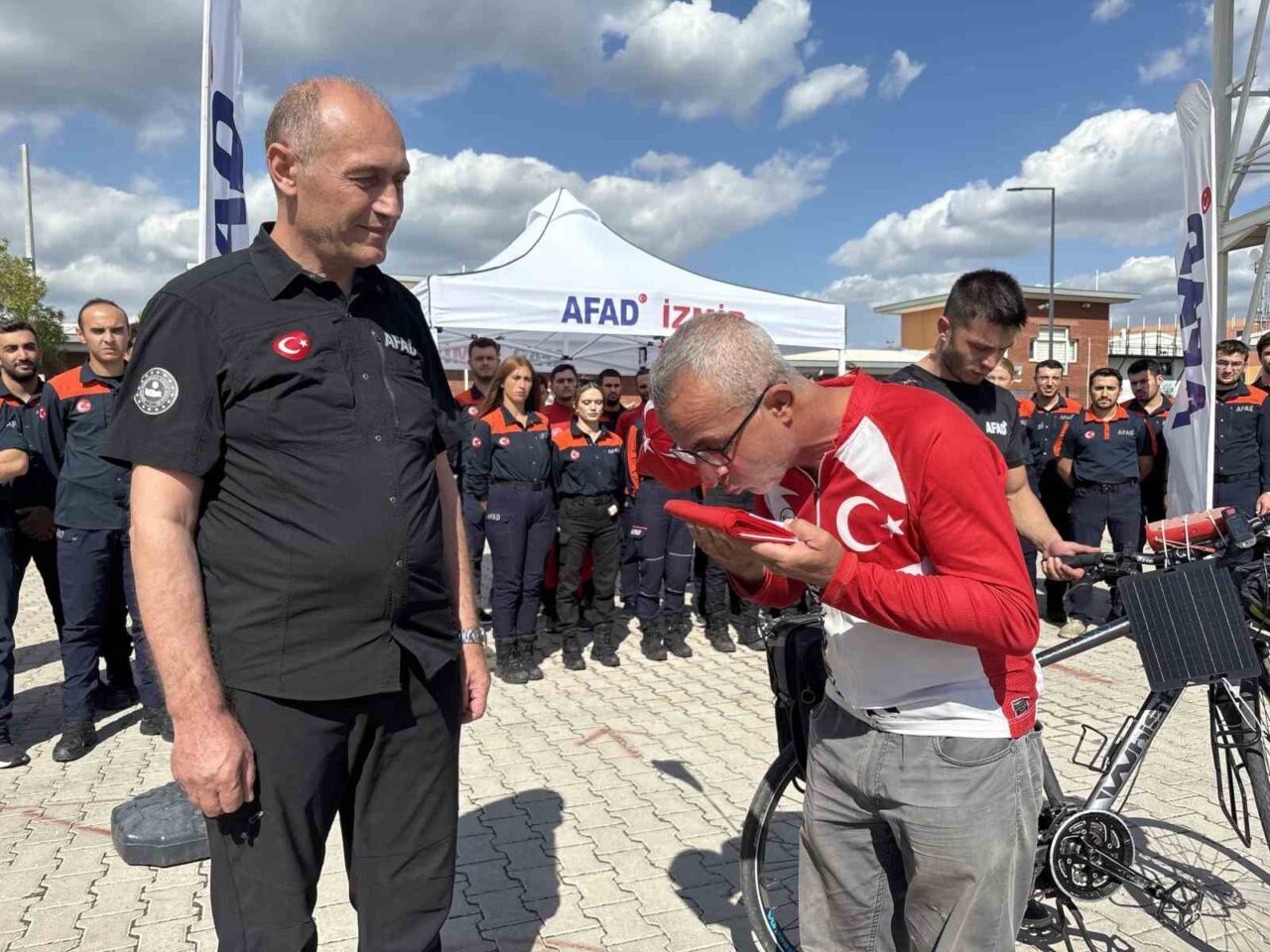 İzmirli Orhan Kotluk (47), 6 Şubat’ta meydana gelen yıkıcı depremler üzerine dikkat çekmek için İzmir’den hareket etti. Yaklaşık 20 yıldır bisikletiyle Türkiye’yi gezen Kotluk, bu özel yolculukta toplamda 1.350 kilometreyi kat etmeyi planlıyor. İzmir İl Afet ve Acil Durum Müdürlüğü’nden aldığı Türk bayrağını Kahramanmaraş Valiliği’ne ulaştırmayı hedefleyen Kotluk, bisikletiyle yapacağı bu seyahatle büyük bir farkındalık oluşturmak istiyor. Yolculuğu sırasında İzmir, Manisa, Uşak, Afyonkarahisar, Konya, Aksaray, Nevşehir ve Kayseri illerini geçerek Kahramanmaraş’a varmayı amaçlıyor. Orhan Kotluk, 2005 yılından bu yana vatan için canını vermiş şehitlerin anısını yaşatmak üzere pedal çevirdiğini ifade etti. “Amacımız, 6 Şubat 2023’te yaşanan 7.7 ve 7.6 büyüklüğündeki depremlerin merkez üssü Kahramanmaraş’a şanlı bayrağımızı taşımak” dedi.