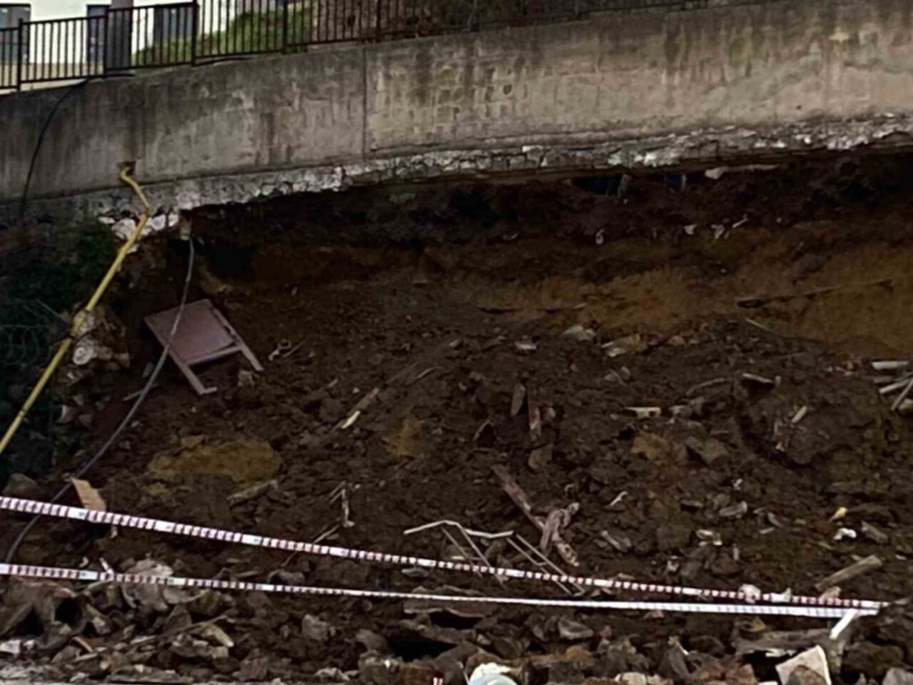Kocaeli’nin İzmit ilçesinde bir inşaat şantiyesinde bulunan 10 metrelik istinat duvarı, okul bahçesine doğru göçtü. Duvarın çökme anı cep telefonu kamerasına yansıdı.