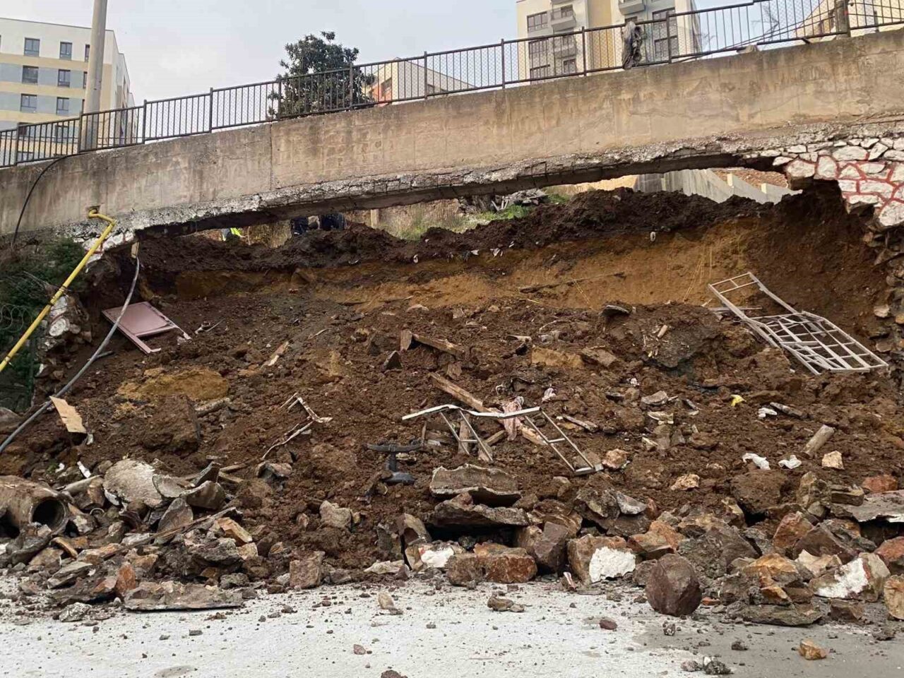 Olay, İzmit Cedit Mahallesi’nde yapımı devam eden bir inşaat alanında gerçekleşti. Edinilen bilgilere göre, iş makinesinin çalıştığı bölgede yer alan yaklaşık 10 metre yüksekliğindeki istinat duvarı, aniden Mimar Sinan Anadolu Lisesi’nin bahçesine doğru göçtü. Duvarın okul bahçesine yıkılmasının ardından bölgeye çok sayıda ekip yönlendirildi. İhbar üzerine olay yerine kısa sürede sağlık, itfaiye, polis, Kocaeli Büyükşehir Belediyesi A Takımı, AFAD ve zabıta ekipleri ulaştı. Bölgeye gelen İZGAZ ekipleri ise okulun spor salonuna giden doğal gaz hattını tedbir amaçlı olarak kesti. Ekipler, çökmenin meydana geldiği alanda güvenlik şeridi çekerek incelemelerde bulundu.
