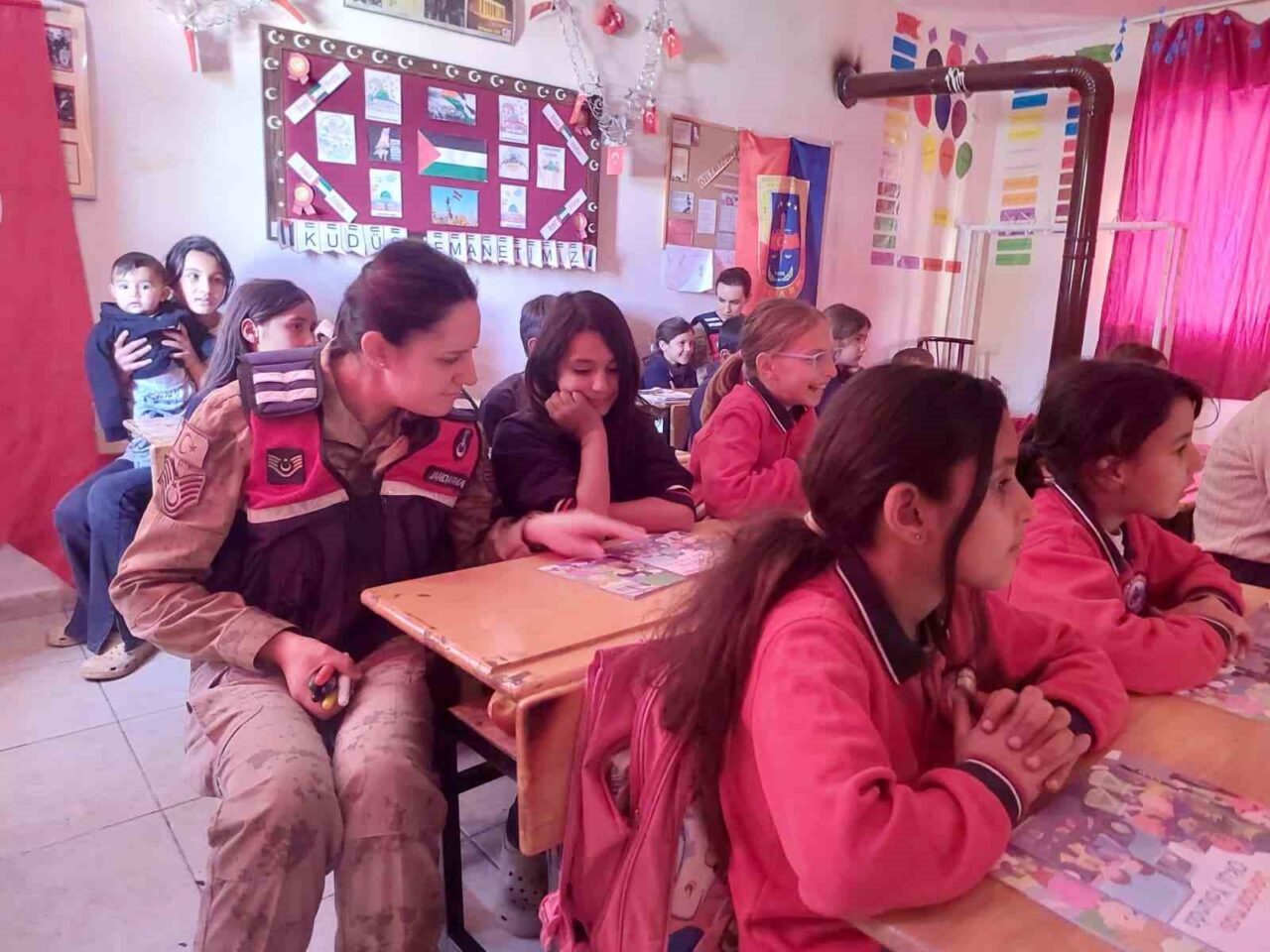 Asayiş Şube Müdürlüğü ile Aile İçi Şiddetle Mücadele ve Çocuk Kısım Amirliği işbirliği ile organize edilen etkinlikte, Trafik Şube Müdürlüğü ve köpek unsurlarının katılımı sağlandı. Bu organizasyon kapsamında, öğrencilere kişisel güvenlik ve trafik kuralları hakkında eğitim verildi. Etkinlik süresince 17 öğrenciye çeşitli hediyeler takdim edilirken, “112 Jandarma” temalı bir çizgi film de gösterildi. Ayrıca, köpek unsurları tarafından bir gösteri gerçekleştirildi.