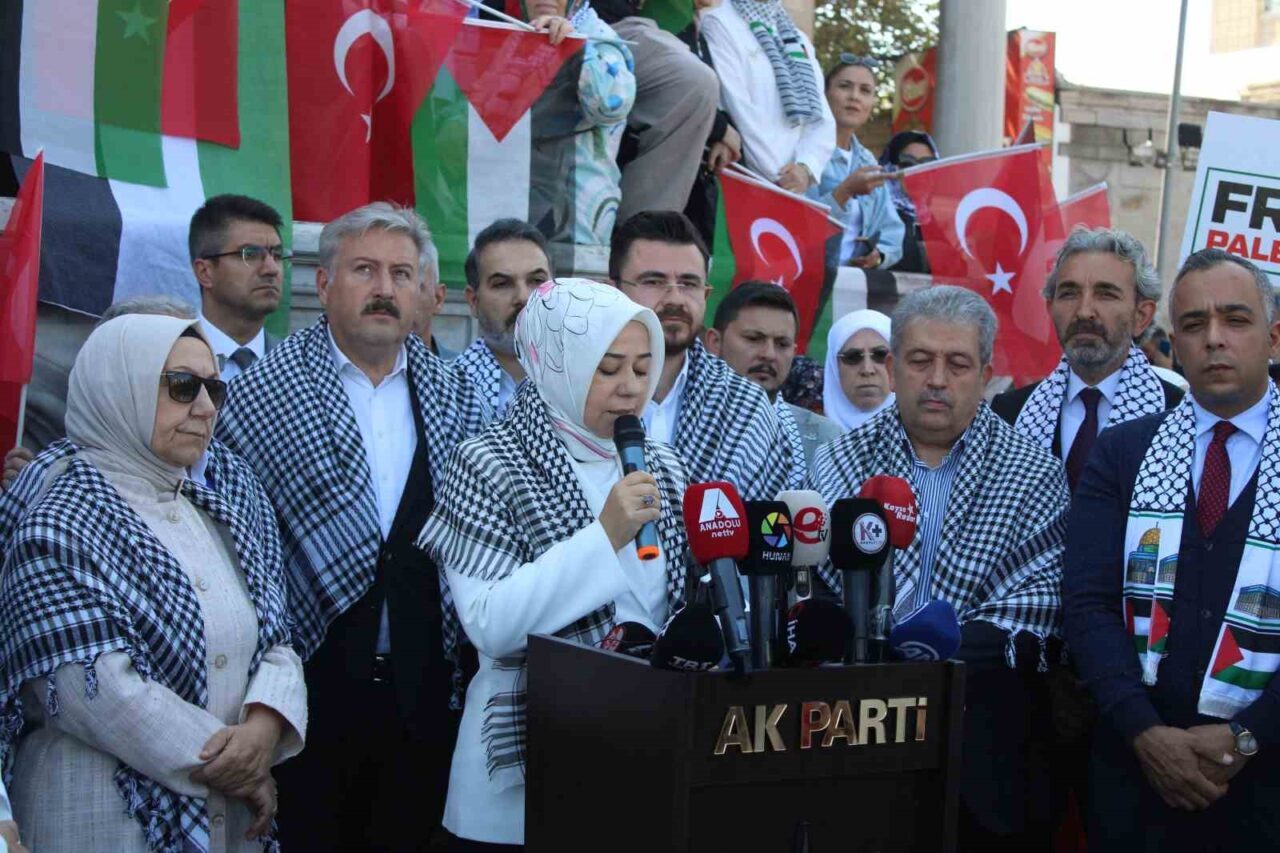 AK Parti Kayseri Kadın Kolları, Gazze’ye destek amacıyla düzenlediği etkinlikte bir araya gelen kadınlar, el ele tutuşarak oluşturdukları zincirle seslerini yükseltti. Etkinlikte konuşan Kadın Kolları İl Başkanı Meral Koşar, “Bu durum insanların dünyadaki rollerinden, taşımış oldukları unvanlardan veya sahip oldukları şeylerden bağımsızdır; bu bir insanlık meselesidir” ifadelerini kullandı.