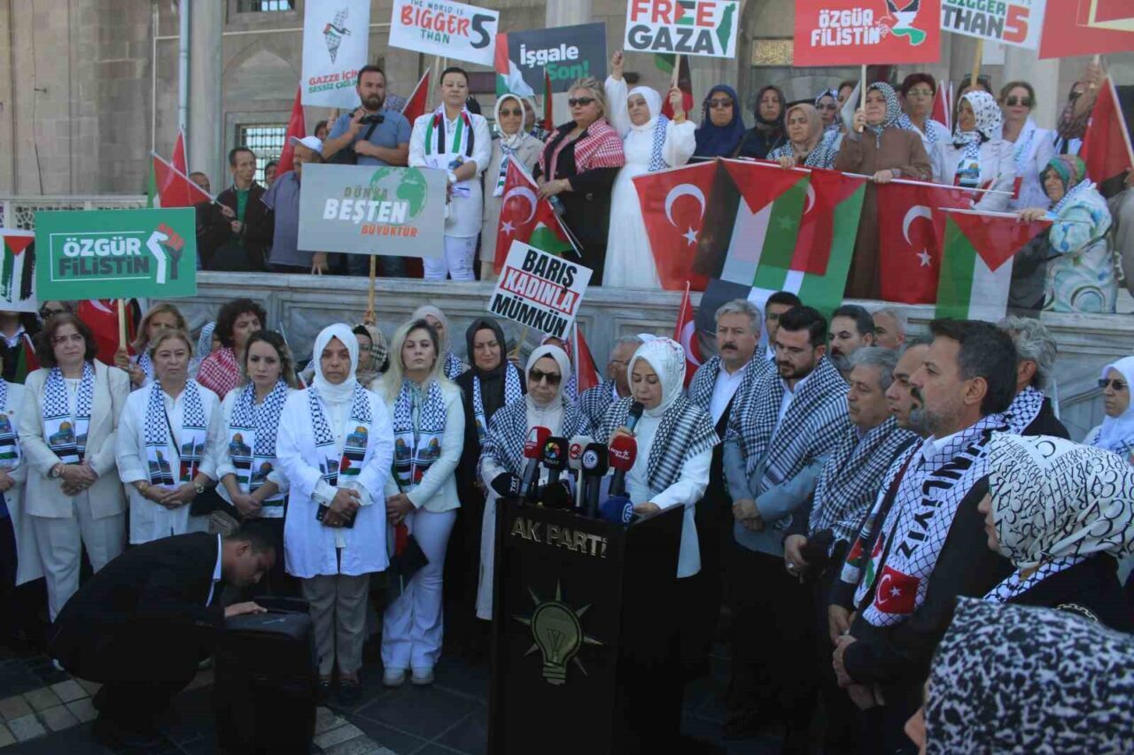 AK Parti Kayseri Kadın Kolları, Gazze’ye destek amacıyla düzenlediği etkinlikte bir araya gelen kadınlar, el ele tutuşarak oluşturdukları zincirle seslerini yükseltti. Etkinlikte konuşan Kadın Kolları İl Başkanı Meral Koşar, “Bu durum insanların dünyadaki rollerinden, taşımış oldukları unvanlardan veya sahip oldukları şeylerden bağımsızdır; bu bir insanlık meselesidir” ifadelerini kullandı.