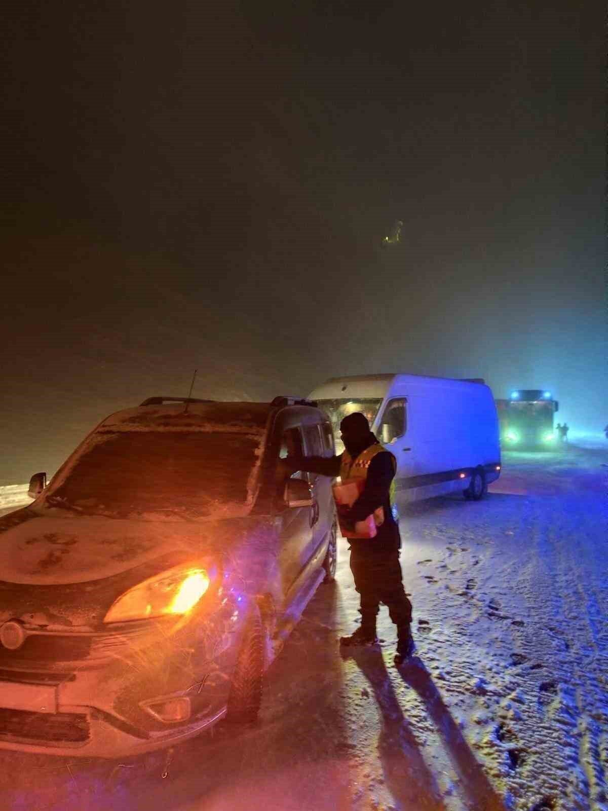 Yoğun kar yağışı ve olumsuz hava koşulları nedeniyle yolda kalan vatandaşlara Jandarma ve Kızılay ekipleri tarafından yiyecek ve içecek ikramında bulunuldu. Ekipler, zorlu kış şartlarında vatandaşların mağduriyet yaşamamaları için yoğun çaba gösterdi.