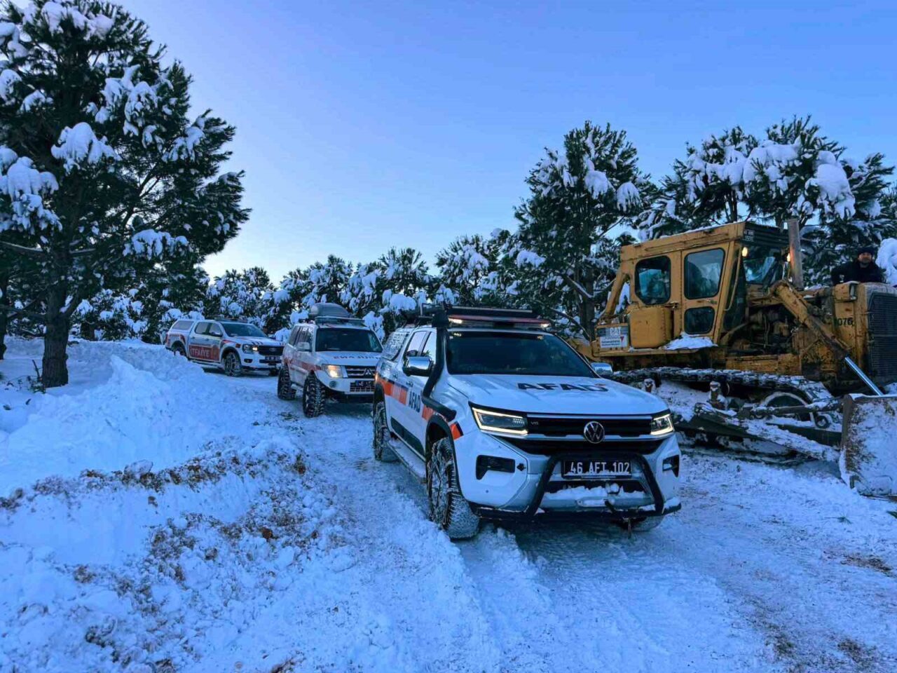 Kahramanmaraş’ta yoğun ve olumsuz hava şartları nedeniyle mahsur kalan hasta 18 saatlik çalışmayla kurtarıldı.