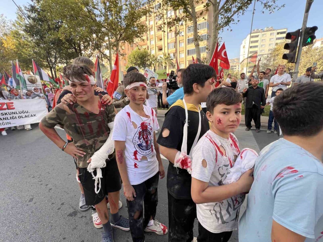 Alparslan Türkeş Bulvarı’nda bir araya gelen kalabalık, ellerinde Türk ve Filistin bayraklarıyla Necip Fazıl Kültür Merkezi’ne kadar yürüyüş yaptı. Bu etkinlikte, Büyükşehir Belediyesi tarafından katılımcılara bayraklar ücretsiz olarak dağıtıldı. Yürüyüş sırasında, ABD Başkanı Trump ve İsrail Başbakanı Netanyahu maske takan bazı bireyler, Filistinli çocuklara yönelik yapılan zulmü temsil eden kısa bir tiyatro gösterisi sahneledi. İsrail askerlerinin Filistinli çocuklara karşı uyguladığı şiddeti konu alan sahneler, yürüyüşe katılanların yoğun tepkisini topladı. “Kahrolsun İsrail” ve “Yaşasın özgür Filistin” sloganları yürüyüş boyunca atılırken, ara ara tekbir sesleri de yükseldi. Necip Fazıl Kültür Merkezi önünde gerçekleşen program, şiirlerin okunması, duaların edilmesi ve çeşitli konuşmaların yapılmasıyla sona erdi. Ayrıca etkinlik sonunda MADO, katılımcılara ikramlarda bulundu.