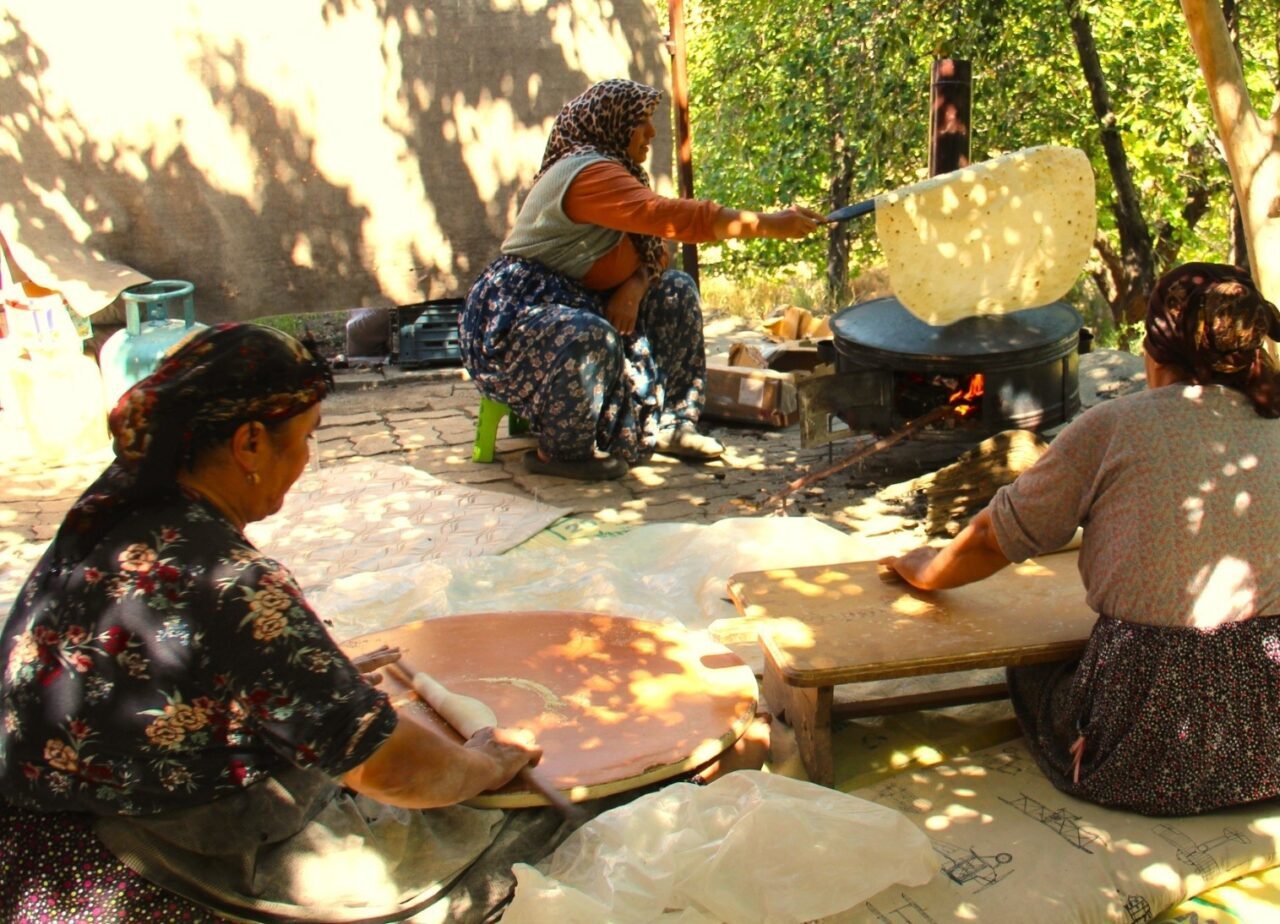 Kış ekmeği yapmak üzere bir araya gelen kadınlardan Ayşe Gören, “Yaklaşan kış için hazırlıklarımız sürüyor. Yufka ekmeği yapıyoruz. Mahallemizin kadınları birlikte toplanarak, imece usulü ekmek yapma işini gerçekleştiriyoruz. Bu, komşuluk ilişkilerinin güçlenmesi ve dayanışmanın bir örneğidir” şeklinde konuştu. Bu gelenek, toplumsal dayanışmanın yanı sıra kadınların bir araya gelerek sosyal bağlarını güçlendirmesine de imkân tanıyor.