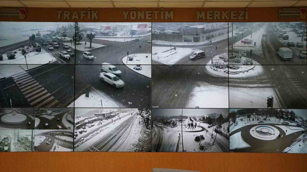 Kahramanmaraş Büyükşehir Belediyesi Trafik Yönetim Merkezi, 11 ilçede bulunan 264 kamerayla yol durumunu anlık olarak takip ediyor.