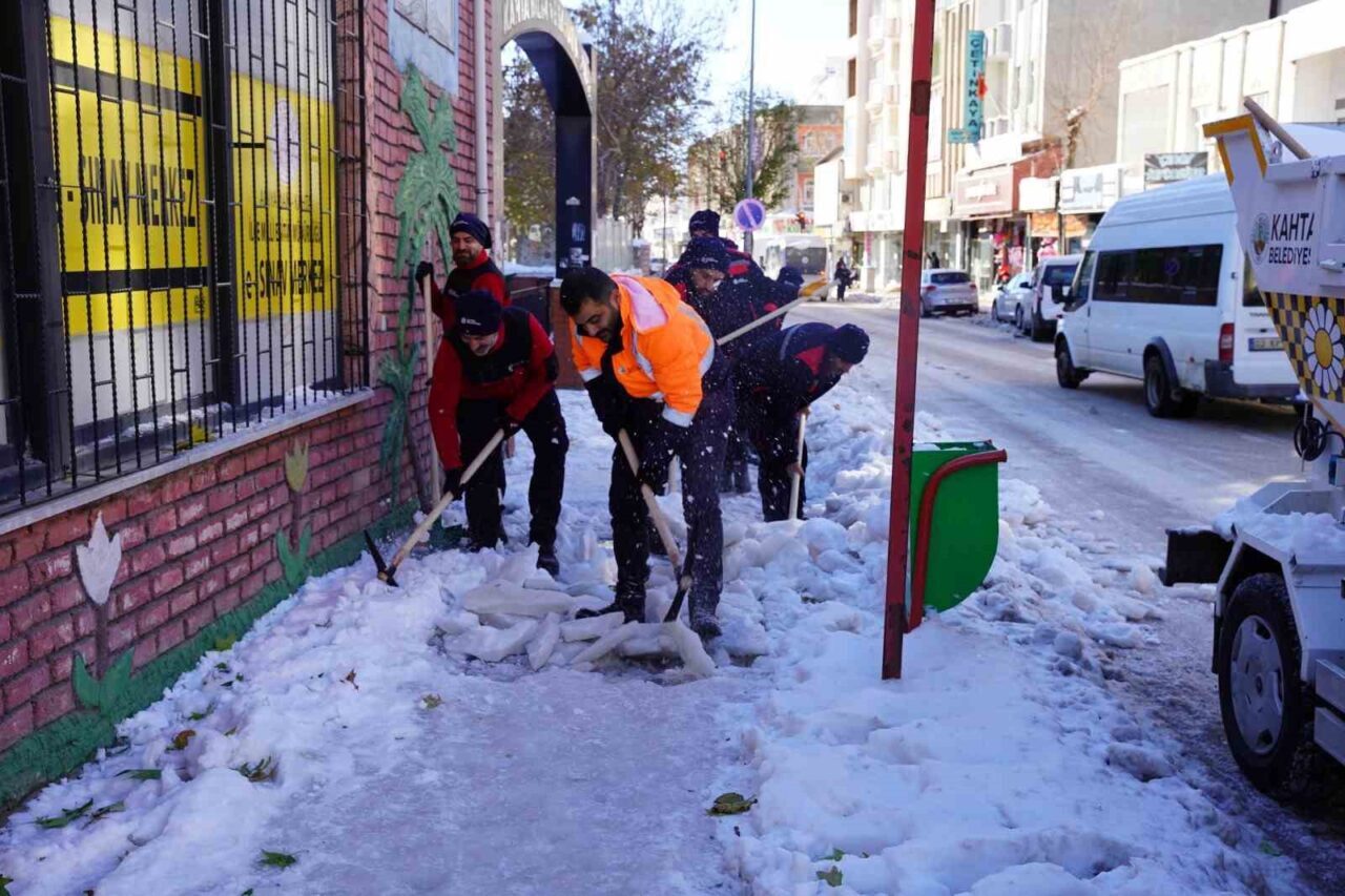 Adıyaman’ın Kahta Belediyesi, ilçe genelinde etkisini artıran kar yağışı ve buzlanmaya karşı sahadaki çalışmalarını kesintisiz sürdürüyor.