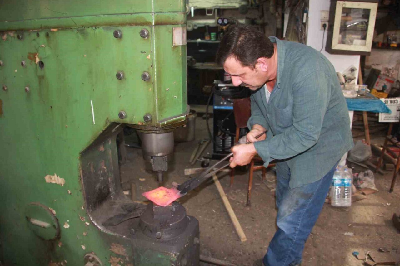 KÜÇÜK YAŞLARDA BABASININ YANINDA ÇIRAK OLARAK DEMİRCİLİĞE BAŞLAYAN CEMİL DÖNER (48) ADETA ATEŞ, DEMİR VE ÇEKİÇLE BÜYÜDÜ.
