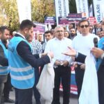 Eylem sırasında toplanan grup, “Meclise çağrı, emeğe saygı” sloganları atarak taleplerini dile getirdi ve ardından basın açıklaması sonrası memurlar icra tebligatı imzaladı.