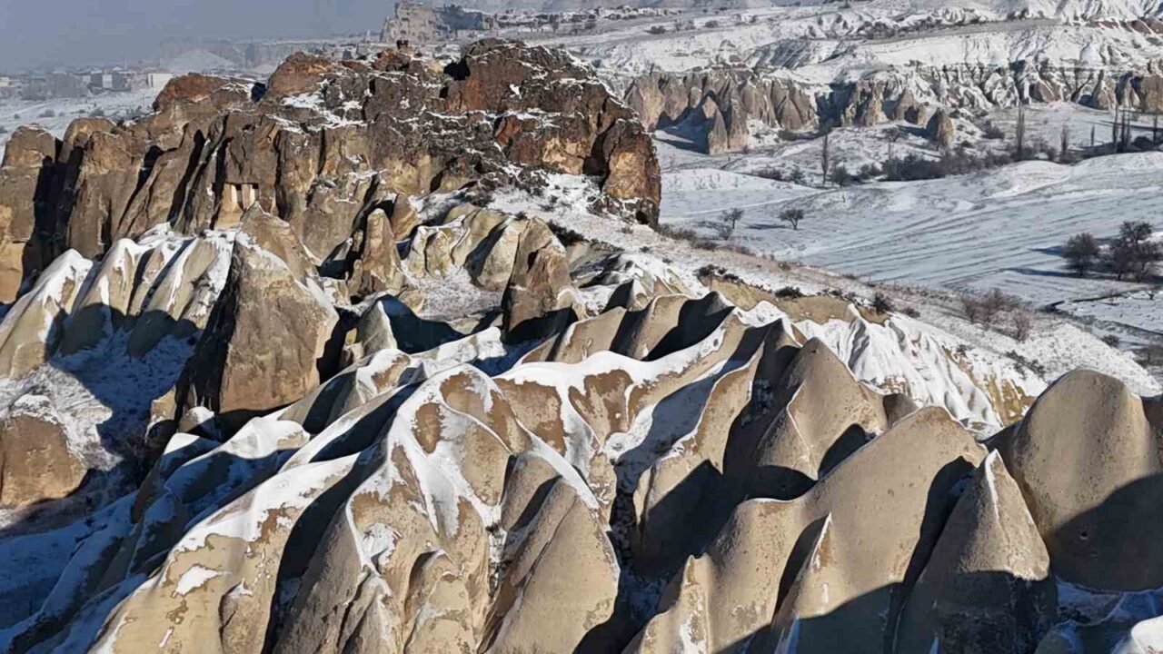 Karlarla kaplı Kapadokya, ziyaretçilerine masalsı bir atmosfer sundu. Peribacalarıyla dolu vadileri, kayadan oyma tarihi kiliseleri ve yeraltı ile yerüstü oluşumlarıyla, turistlerin dikkatini çeken Kapadokya bölgesi yılbaşı gecesi yağan karın ardından beyaza büründü. Bölgeyi ziyaret eden yerli ve yabancı turistler, karla kaplanan peribacaları ve doğal kaya oluşumları arasında gezinti yaparak bol bol fotoğraf çektiler. Yaklaşık bir hafta sonra havalanan sıcak hava balonlarına binen turistler de karla kaplı Kapadokya’yı gökyüzünden izleme fırsatı buldu.
