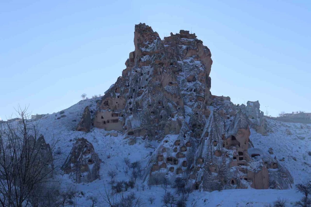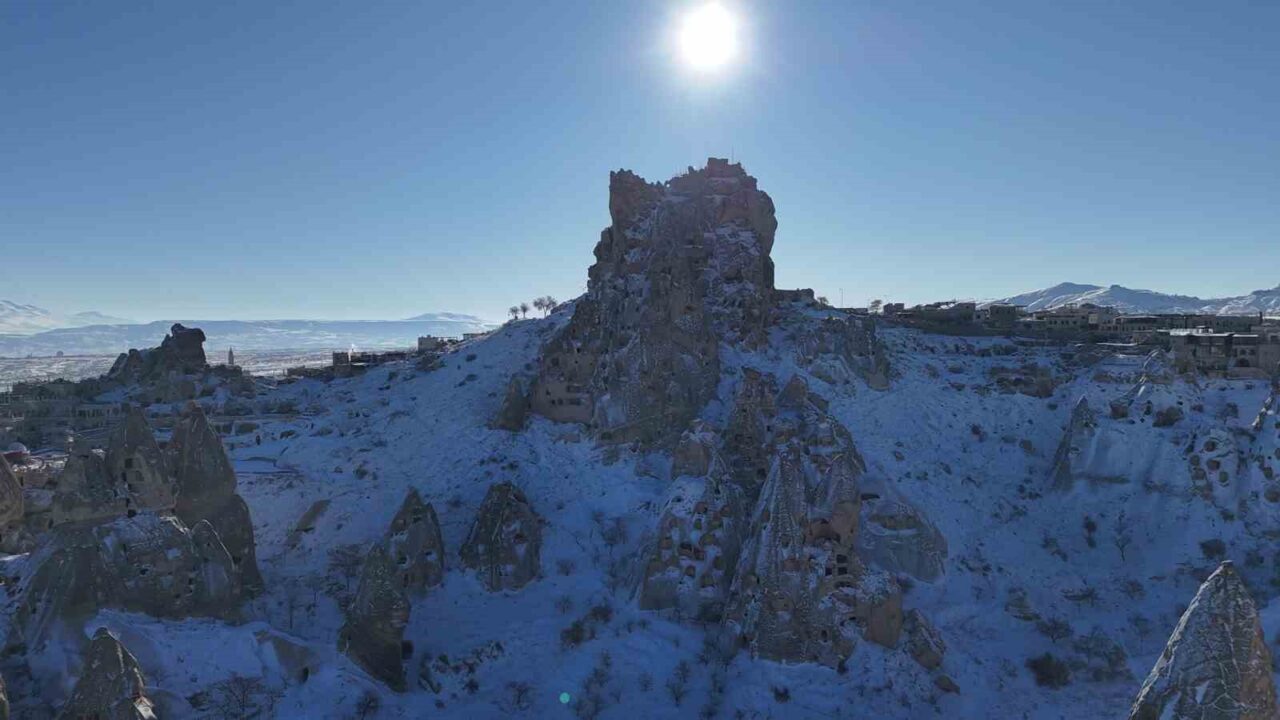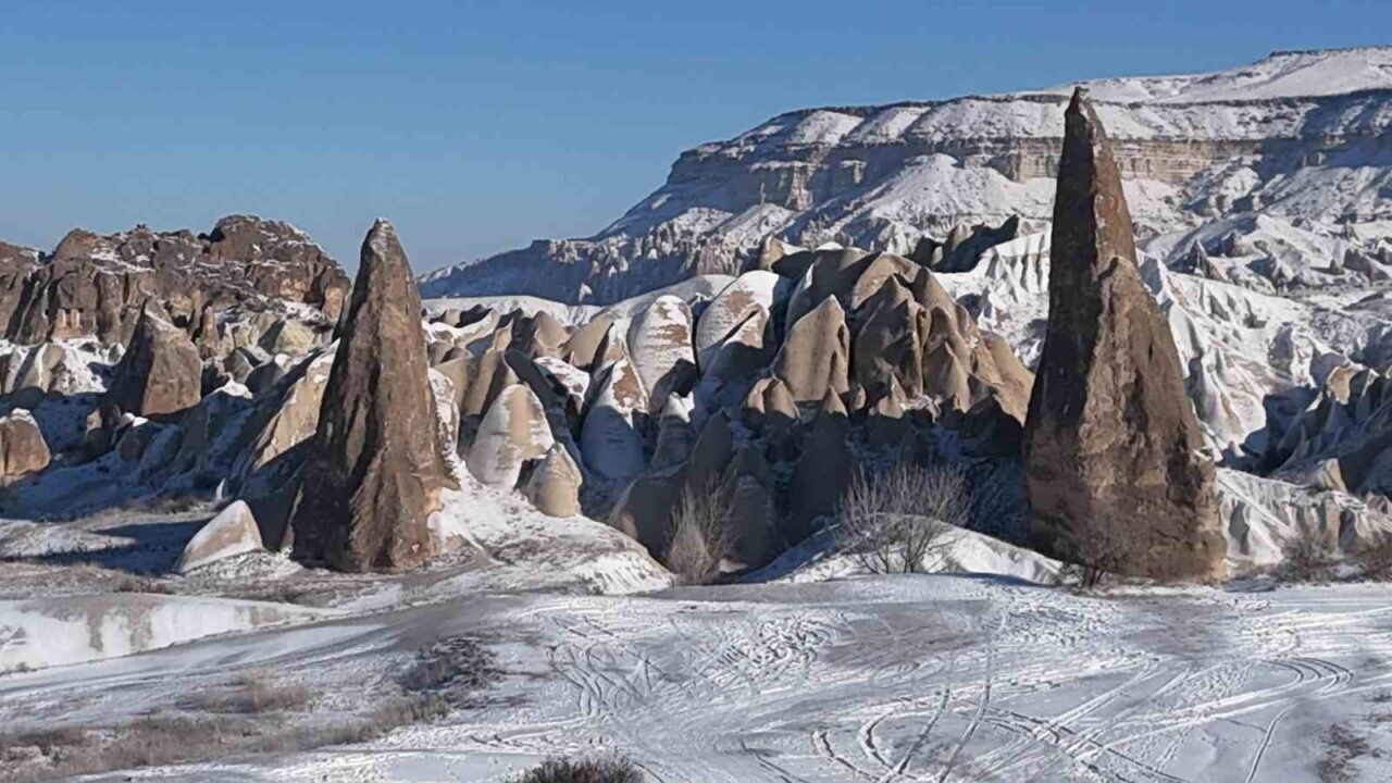 Karlarla kaplı Kapadokya, ziyaretçilerine masalsı bir atmosfer sundu. Peribacalarıyla dolu vadileri, kayadan oyma tarihi kiliseleri ve yeraltı ile yerüstü oluşumlarıyla, turistlerin dikkatini çeken Kapadokya bölgesi yılbaşı gecesi yağan karın ardından beyaza büründü. Bölgeyi ziyaret eden yerli ve yabancı turistler, karla kaplanan peribacaları ve doğal kaya oluşumları arasında gezinti yaparak bol bol fotoğraf çektiler. Yaklaşık bir hafta sonra havalanan sıcak hava balonlarına binen turistler de karla kaplı Kapadokya’yı gökyüzünden izleme fırsatı buldu.