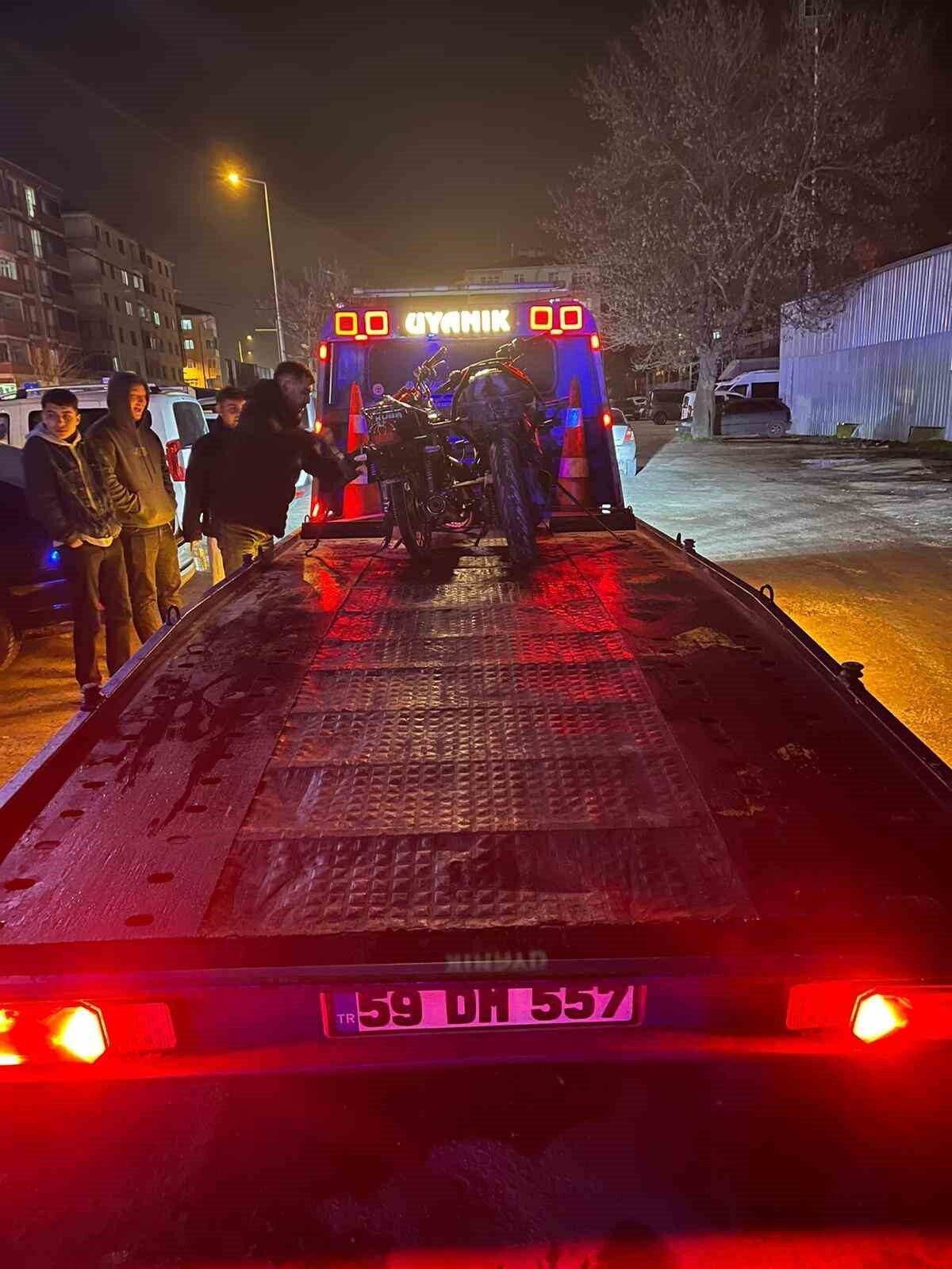 Kapaklı İlçe Emniyet Müdürlüğü ekipleri, İsmetpaşa Mahallesi Levent Caddesi’nde plakasız akrobatik hareketler yapan ve çevreye rahatsızlık veren 3 motosikletliyi takibe aldı. Polisin dur ihtarına uymayan şahıslar, gerçekleştirilen denetimle yakalandı.