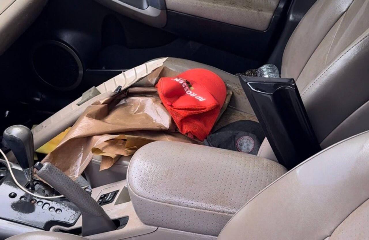 Araçta dikkat çeken bir diğer detay ise sürücü tarafındaki camın bir miktar açık olması oldu.