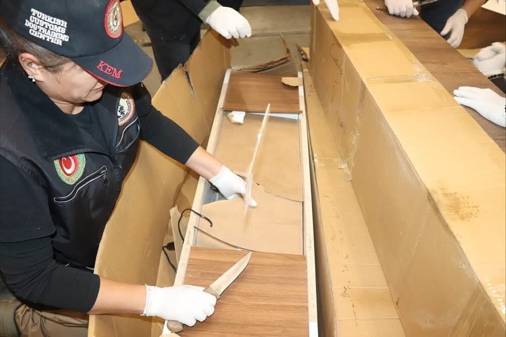İpsala Sınır Kapısı’nda gerçekleştirilen bir diğer operasyonda, şüpheli bir tırda yapılan kapsamlı aramada, ahşap bir televizyon ünitesinin içine gizlenmiş 30 vakumlu poşet içinde 96 kilo 796 gram uyuşturucu madde bulundu.