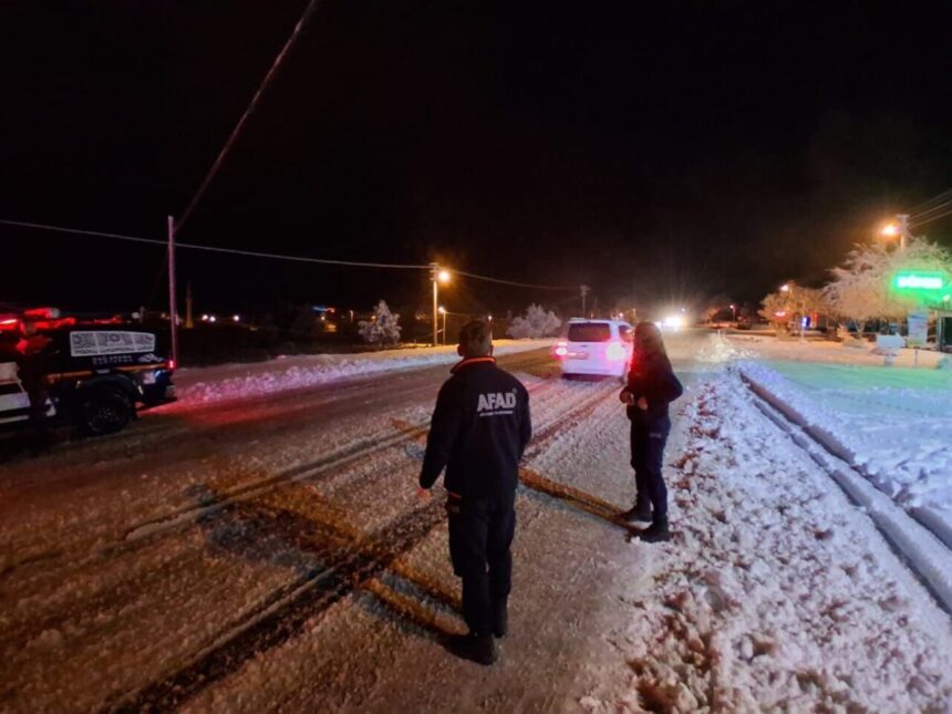 Edinilen bilgiye göre, Karabel mevkiinde yoğun kar yağışı nedeniyle araçlar ilerlemekte zorlanarak yolda mahsur kaldı. 112 Acil Çağrı Merkezi’ne yapılan ihbar üzerine bölgeye emniyet, jandarma, AFAD ve Karayolları ekipleri gönderildi. Kısa sürede bölgeye ulaşan Karayolları ekipleri yol açma çalışmalarına başladı ve ilave ekiplerin de bölgeye yönlendirildiği öğrenildi. Emniyet ve jandarma ekipleri yol güvenliğini sağlamak amacıyla gerekli önlemleri aldı. Herhangi bir olumsuz duruma karşı AFAD ekipleri de bölgeye intikal etti. Mahsur kalan araçların güvenli bir şekilde kurtarılması ve yolun yeniden ulaşıma açılması için çalışmalar devam ediyor.