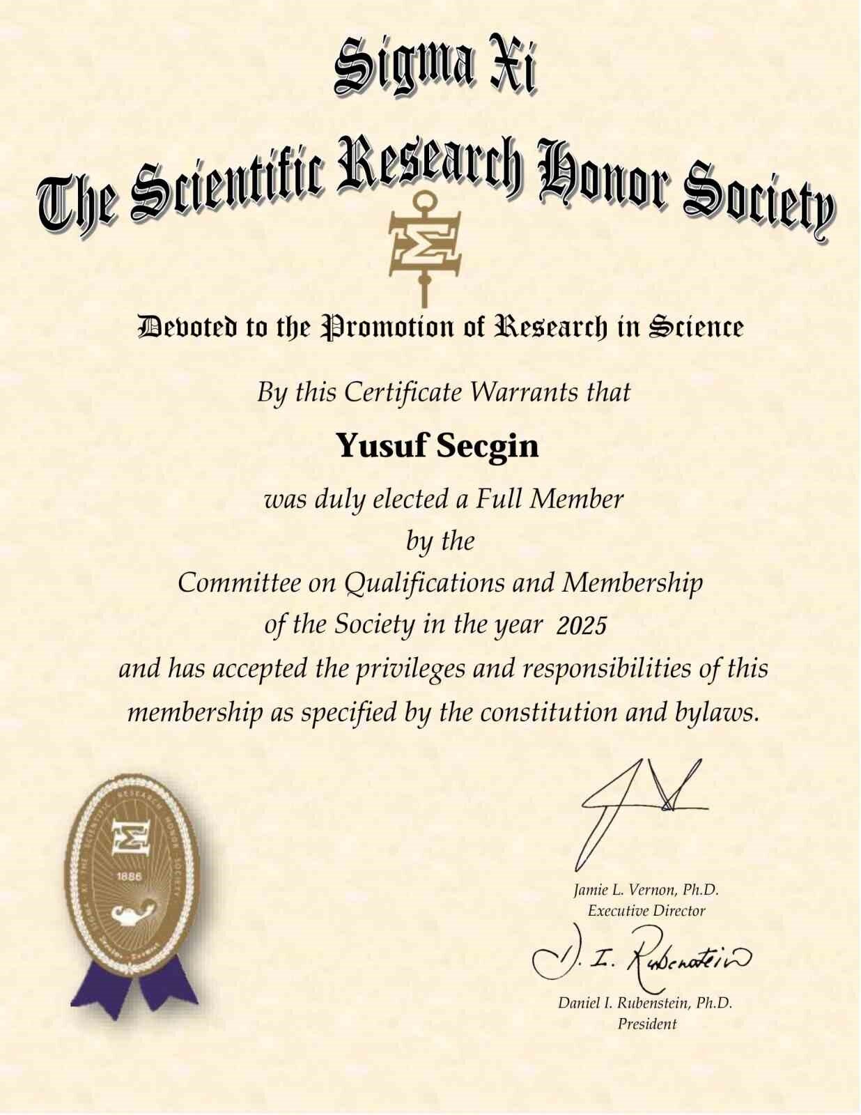 Karabük Üniversitesinden (KBÜ) Dr. Öğr. Üyesi Yusuf Seçgin, dünya bilim çevrelerinde prestijli konumuyla bilinen Sigma Xi’ye tam üyeliğe seçildi.