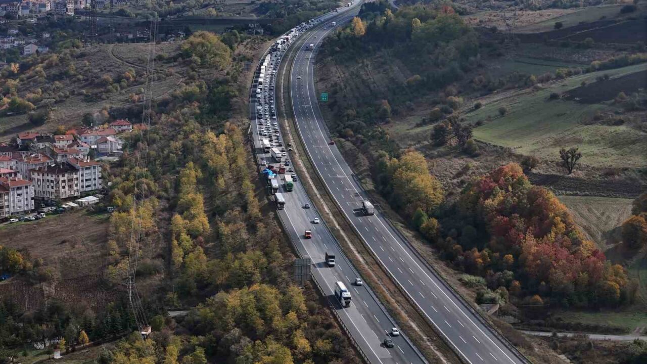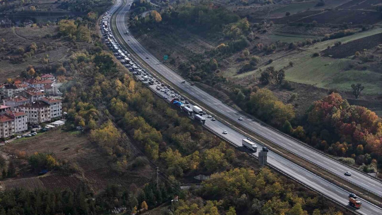 KAZA NEDENİYLE OLUŞAN TRAFİK, HAVADAN DRON İLE GÖRÜNTÜLENDİ.