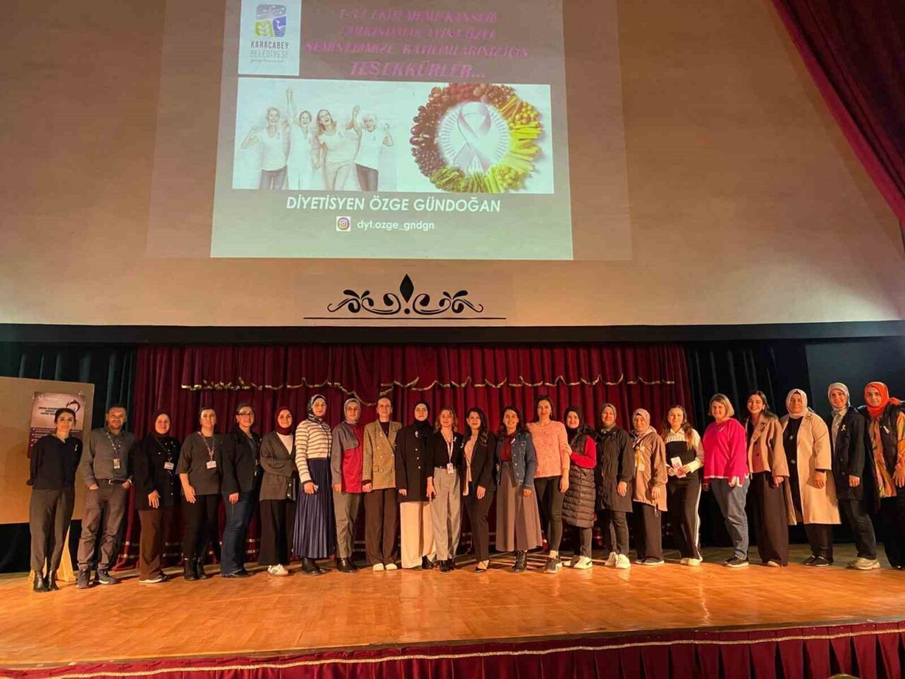 Karacabey Belediyesi, İlçe Sağlık Müdürlüğü işbirliğiyle organize ettiği, Meme Kanseri Farkındalık Ayı etkinliğinde de dikkat çeken bir rol üstlendi. Diyetisyen Özgü Gündoğan, “Meme Kanseri ve Beslenme” konulu bir sunum yaparak bilgilendirme sağlarken, Dr. Sümeyye Çam, erken teşhis ve korunma yöntemleri hakkında katılımcılara faydalı bilgiler paylaştı.
