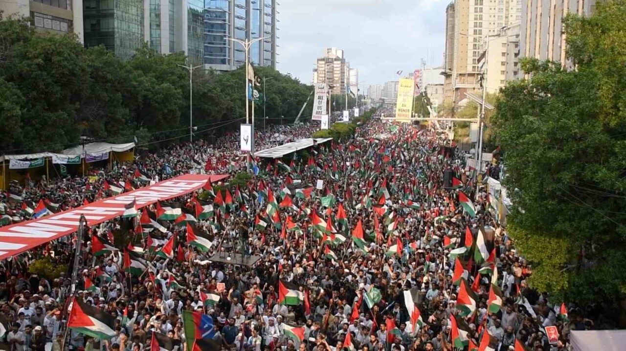 Pakistan’ın Karaçi kentinde, binlerce kişi Gazze Şeridi’ne destek vermek amacıyla sokaklara döküldü. Cemaat-i İslami Partisi öncülüğünde gerçekleştirilen bu anlamlı gösteride, katılımcılar ellerinde Filistin bayraklarıyla, Gazze halkıyla dayanışma içinde olduklarını dile getirdi.