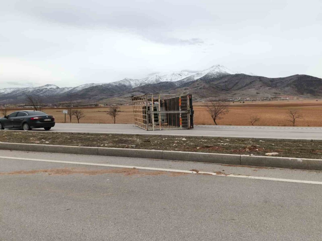 Karaman’da Fırtına Sonucu Devrilen Kamyonetin Römorku Karşı Şeride Fırladı