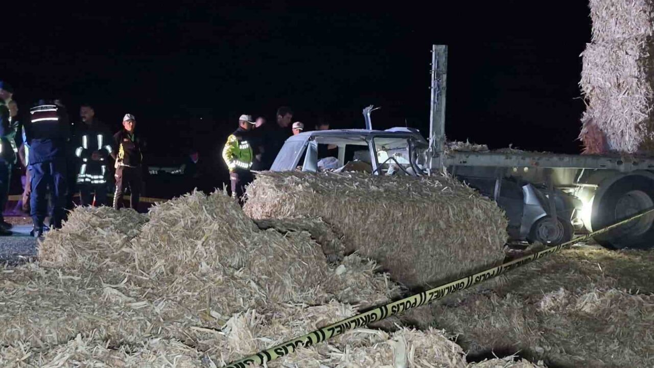 Karaman’da, mısır sapı balyası taşıyan bir tıra çarpan otomobilin sürücüsü ve eşi trajik bir kaza sonucu yaşamını yitirdi.