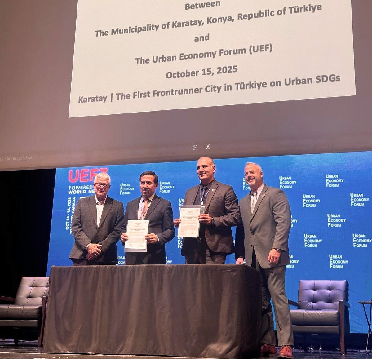 Kanada’nın Toronto kentinde gerçekleştirilen 7. Kentsel Ekonomi Forumu’nda (UEF7) Türkiye’yi temsil eden Karatay Belediyesi, “Türkiye’nin ilk öncü şehri” unvanına layık görüldü. Konya’nın merkez ilçesi olan Karatay’ın Belediye Başkanı Hasan Kılca, toplantı sırasında ilçede gerçekleştirilen kentsel dönüşüm ve kooperatif konut projeleri hakkında bilgi sundu.