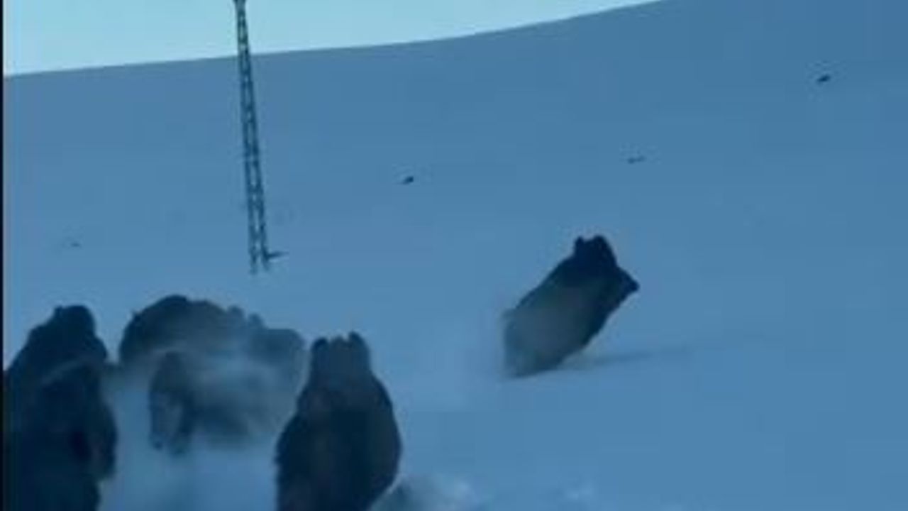 Ardahan'daki karlı köy yolu üzerinde bir domuz sürüsü görüntülendi. Merkeze bağlı Akyaka köyü yolunda sabah saatlerinde seyir halindeki Vedat Özgür'ün önüne aniden bir domuz sürüsü çıktı. Domuzlar, yol boyunca bir süre aracın önünde koşarak ilerledi. Sürücü Özgür, hayvanlara zarar vermemek için hızını düşürerek dikkatlice devam etti. Bir süre sonra yol kenarındaki karla kaplı bölgeye yönelen domuzlar, gözden kayboldu. Yaşanan bu ilginç anlar, sürücünün cep telefonuyla kaydedildi. Bölgedeki vatandaşlar, zaman zaman yaban domuzlarının görüldüğünü ve özellikle sabah saatlerinde sürücülerin dikkatli olmaları gerektiğini belirtti.
