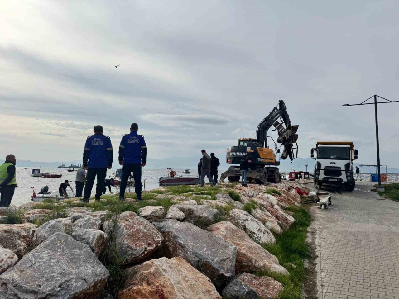 3621 sayılı Kıyı Kanunu ile ilgili Yönetmelik ve 3194 sayılı İmar Kanunu çerçevesinde yasa dışı olarak inşa edilen iskeleler ve beton platformların yıkılmasına yönelik süreç başlatıldı. Büyükşehir Belediyesi Encümeni kararına göre 775 sayılı Gecekondu Kanunu’nun 18. maddesi gereği, belediye sınırları içerisinde ya da dışında kamuya ya da devlete ait arazilerde inşa edilmiş izinsiz yapıların kaldırılması için gerekli tebliğ süreci tamamlanarak uygulama yapılmaktadır. Bu çerçevede, yıktırma işlemleri, yasal mevzuata uygun şekilde gerçekleştirilmektedir.