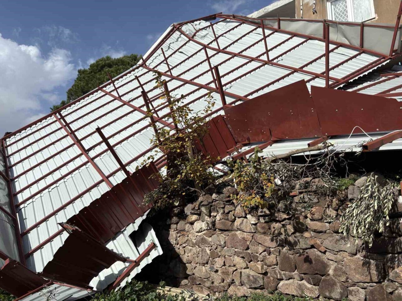 Öte yandan, rüzgarın şiddetine dayanamayarak uçan metal çatının yaklaşık bir ay önce yapıldığı öğrenildi.