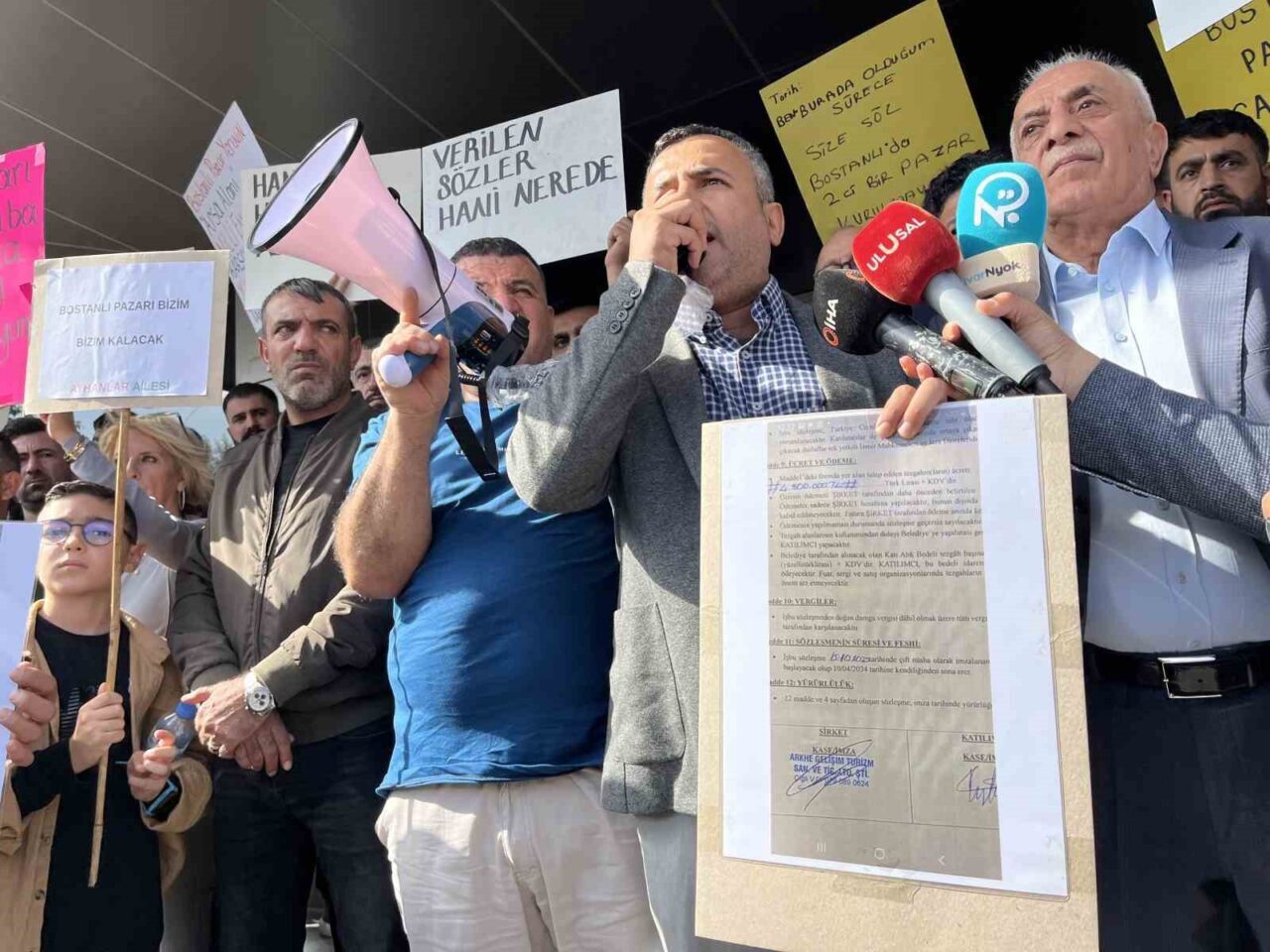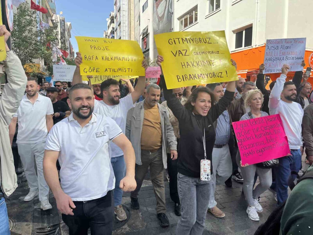 KARŞIYAKA İLÇESİNDE PAZARCI ESNAFI, BOSTANLI PAZARI’NIN HAFTADA İKİ GÜNE ÇIKARILMASI VE PAZAR ALANININ ÖZEL BİR ŞİRKETE DEVREDİLMESİ PLANINA TEPKİ GÖSTEREREK BELEDİYE BAŞKANINI İSTİFAYA ÇAĞIRDI.