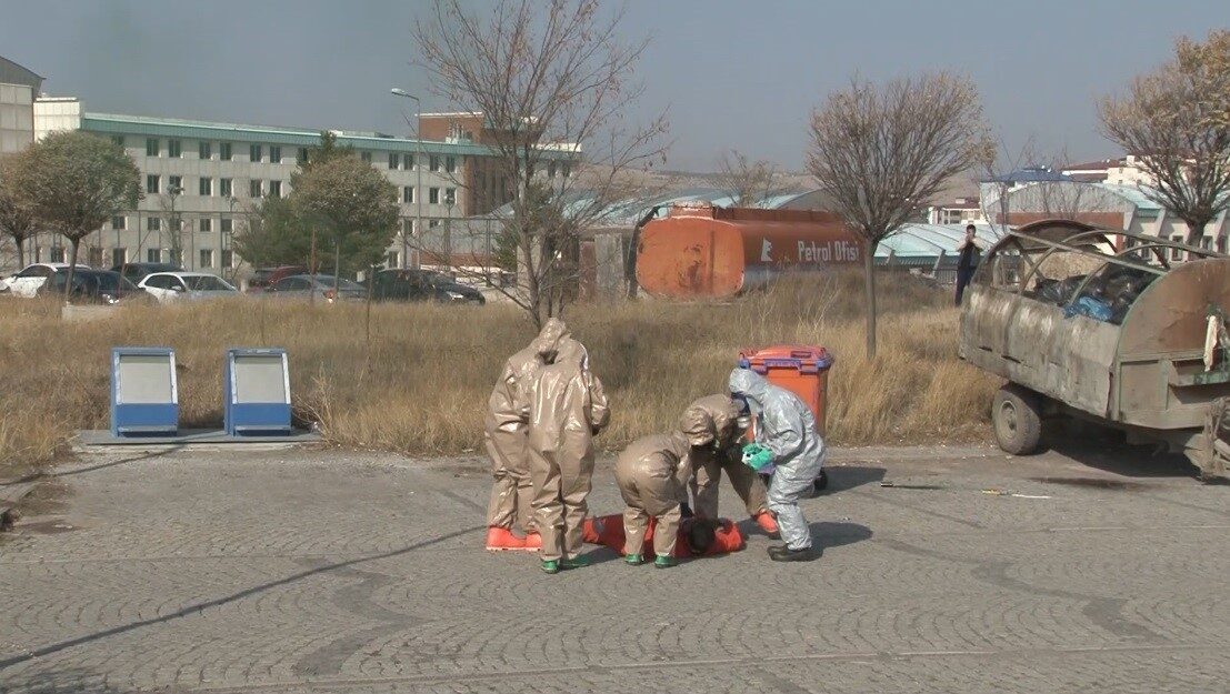 Harakani Devlet Hastanesi’nin koordinasyonu ile yapılan tatbikatta, AFAD, UMKE, 112 Acil Sağlık Hizmetleri ve itfaiye ekiplerinin birlikte hareket etmesi, önemli bir senaryonun başarıyla uygulanmasını sağladı. Senaryo kapsamında, Ayaktan Kemoterapi Ünitesi’nde çıkan bir yangın ile birlikte KBRN (Kimyasal, Biyolojik, Radyolojik ve Nükleer) olayı işletildi. Olay, bir prizin aşırı ısınarak yangına neden olmasıyla başladı.