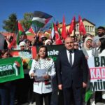 Etkinlikte açıklamalarda bulunan AK Parti Kadın Kolları Başkanı Zelal Sara, “Bugün kadınlar, Gazze’nin sesi olmak için bir aradayız. 81 ilde kurduğumuz bu zincir, Gazze’de acı çeken anne babaların ve yetim kalan çocukların sesi. Biz, Gazzeli annenin ‘Bir torba un yeterdi’ diye haykırışını dünyaya duyurmak için buradayız. Bu zulme sessiz kalanlara soruyorum: Kalbiniz nerde? Yüce Rabbimiz ‘Bir insanı öldüren, bütün insanlığı öldürmüş gibidir’ diyor. Gazze, bu sözlerin bir testidir” dedi.