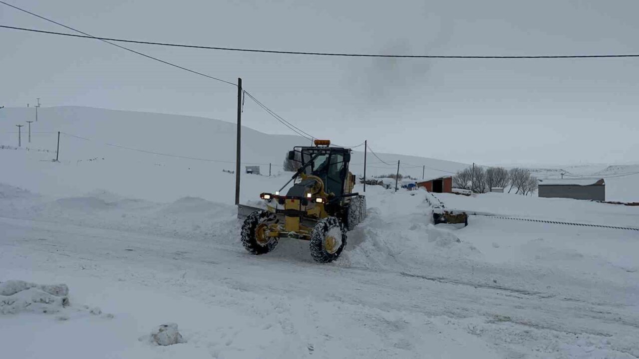 Kars’ta “Kar Kaplanları” köy yollarında karla mücadeleye ara vermeden devam ediyor.