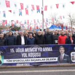 “Bizler bir yandan üzüntülü, bir yandan buruk bir duyguyla buradayken bu organizasyon hepimizin takip ettiği bir etkinliğe dönüştüğü için mutluyuz. O bilge ve keskin bir kalemdi; o susturulamadı. Bu vahşeti, bu acıyı ve bu gözyaşını hiçbir zaman unutmayacağız. Uğur Mumcu ve Uğur Mumcular unutulmaz. İnşallah onların aydınlık yüzü ve bilgileriyle ülkemiz, her zaman aydınlık bir yolda koşmaya devam edecek. Daha güzel günler için hepimize güç kuvvet diliyorum. Bu güzel etkinlikte yer alan tüm sporcularımıza başarılar diliyorum.”
