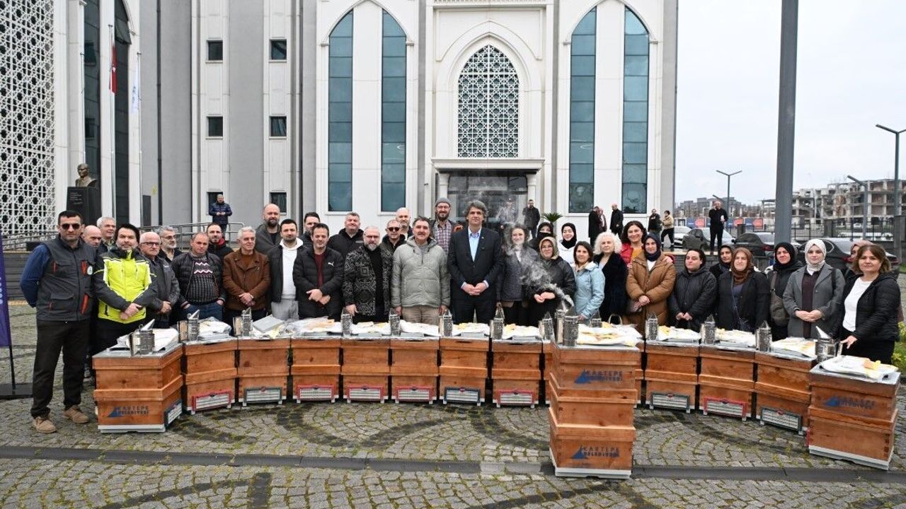 Kartepe'de arıcılık faaliyetlerini teşvik etmek ve bal üretimini artırmak amacıyla üreticilere kovan ve çeşitli ekipmanlar teslim edildi. Kartepe Belediye Başkanı Mustafa Kocaman, bu dağıtım programı çerçevesinde ilçedeki arıcılarla bir araya gelerek, arıcılığın doğa ve tarımsal üretim açısından önemini vurguladı. Kocaman, yerel üreticilere her alanda destek vermeye devam edeceklerini belirterek, arıcılara bereketli bir sezon diledi. Programa katılan Kocaeli Arıcılar Birliği Başkanı Meral Deniz, Başkan Kocaman'a arıcılığa yaptığı destekler için teşekkür etti. Kartepe Belediyesi tarafından sağlanan ekipman desteği ile ilçedeki arıcılık faaliyetlerinin gelişimi ve üreticilerin daha verimli bir sezon geçirmesi amaçlanıyor.