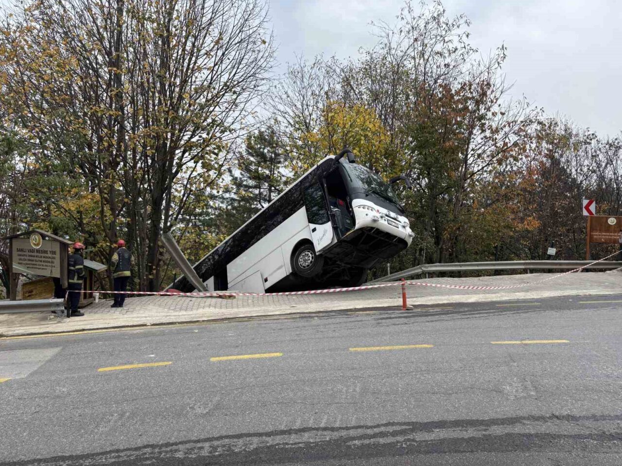 Kocaeli’nin Kartepe ilçesinde meydana gelen olayda, park halindeki bir tur otobüsü hareket ederek bariyeri aşıp şarampole yuvarlandı. Facianın eşiğinden dönüldüğü kazada can kaybı ya da yaralanan olmadı.