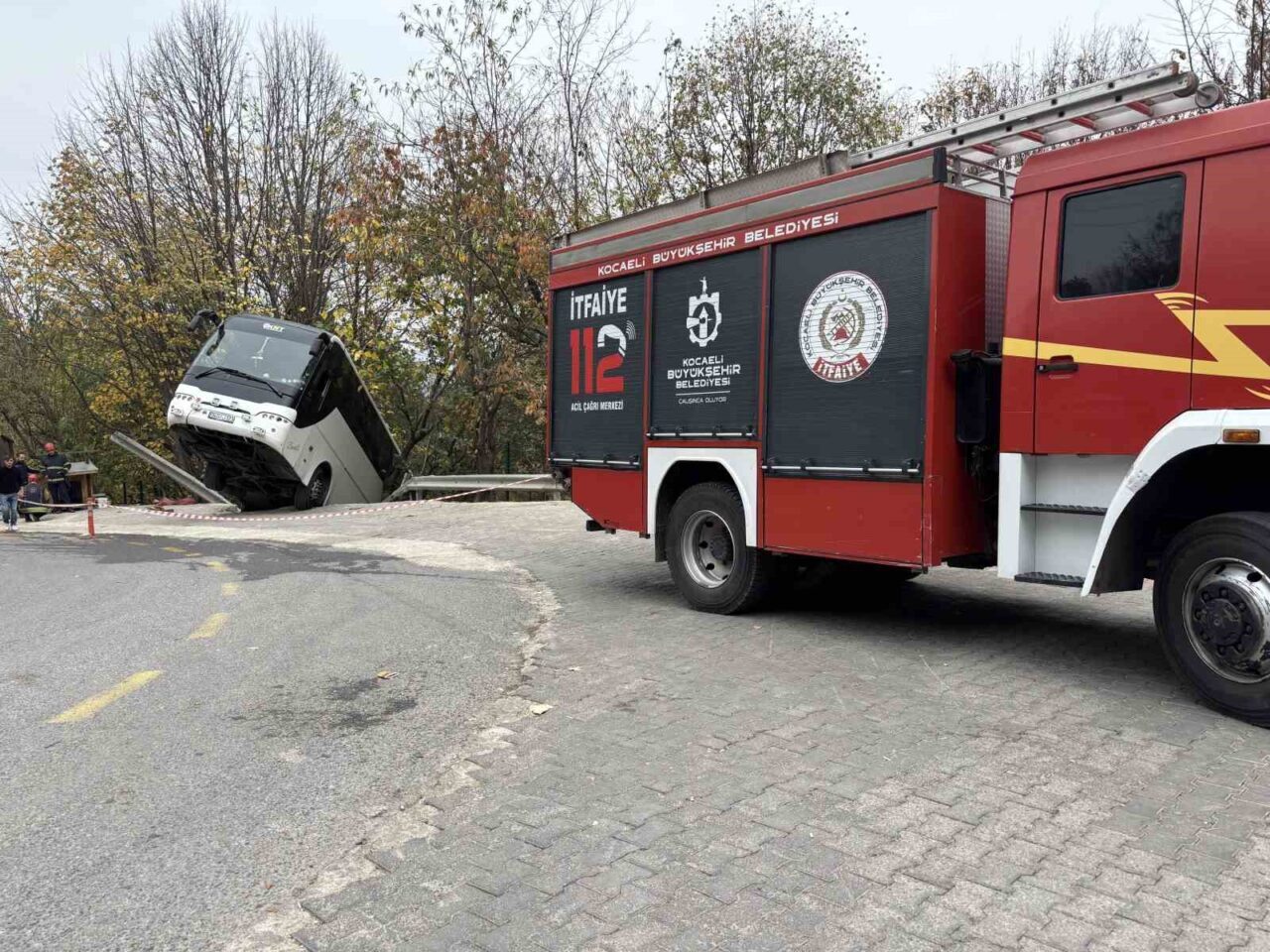 Olay, bugün saat 12.00 sularında Maşukiye Mahallesi Kartepe Caddesi üzerinde gelişti. 34 GIJ 323 plakalı otobüs, park halindeyken birden hareket ederek rampa aşağı gitmeye başladı. Otobüs, bariyeri geçerek şarampole düştü ve araçta ön kısmı havada kalırken, arka tekerlekleri toprak zemine değdi. İhbar üzerine bölgeye hızlıca jandarma ve itfaiye ekipleri sevk edildi. Jandarma, otobüsün etrafını güvenlik şeridiyle sardı ve güvenlik önlemleri aldı. Ayrıca, otobüsü bulunduğu yerden çıkarmak için gerekli çalışma başlatıldı.
